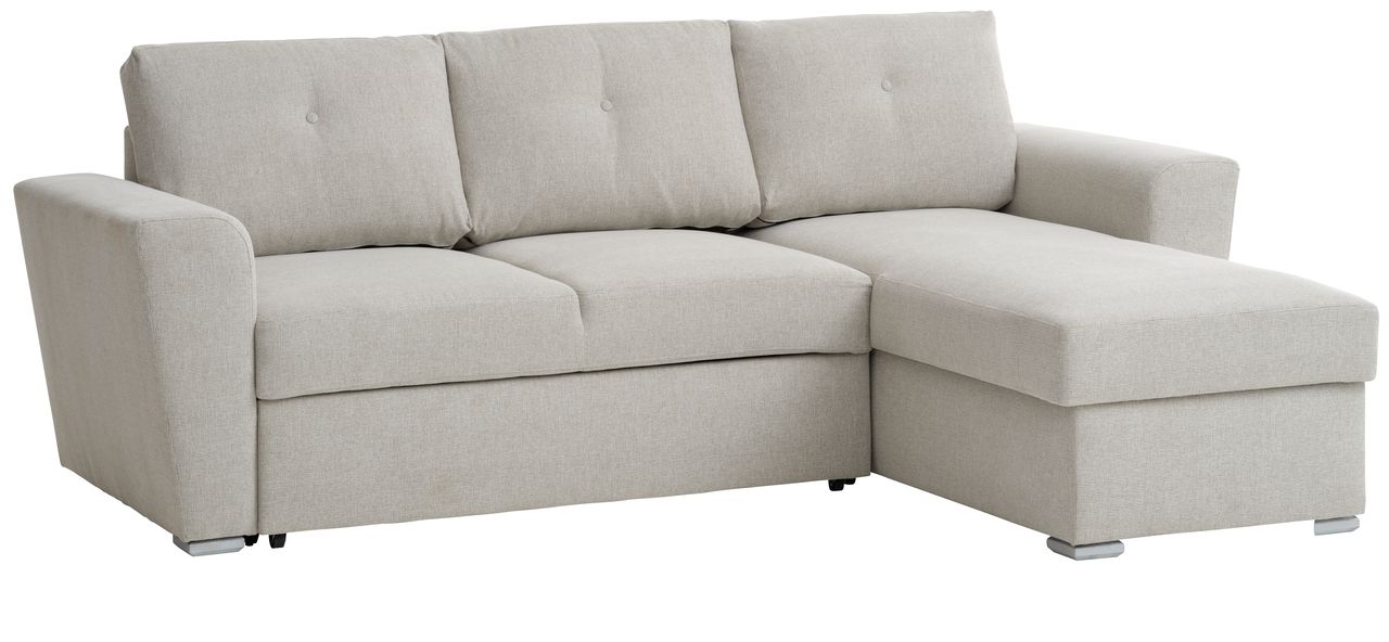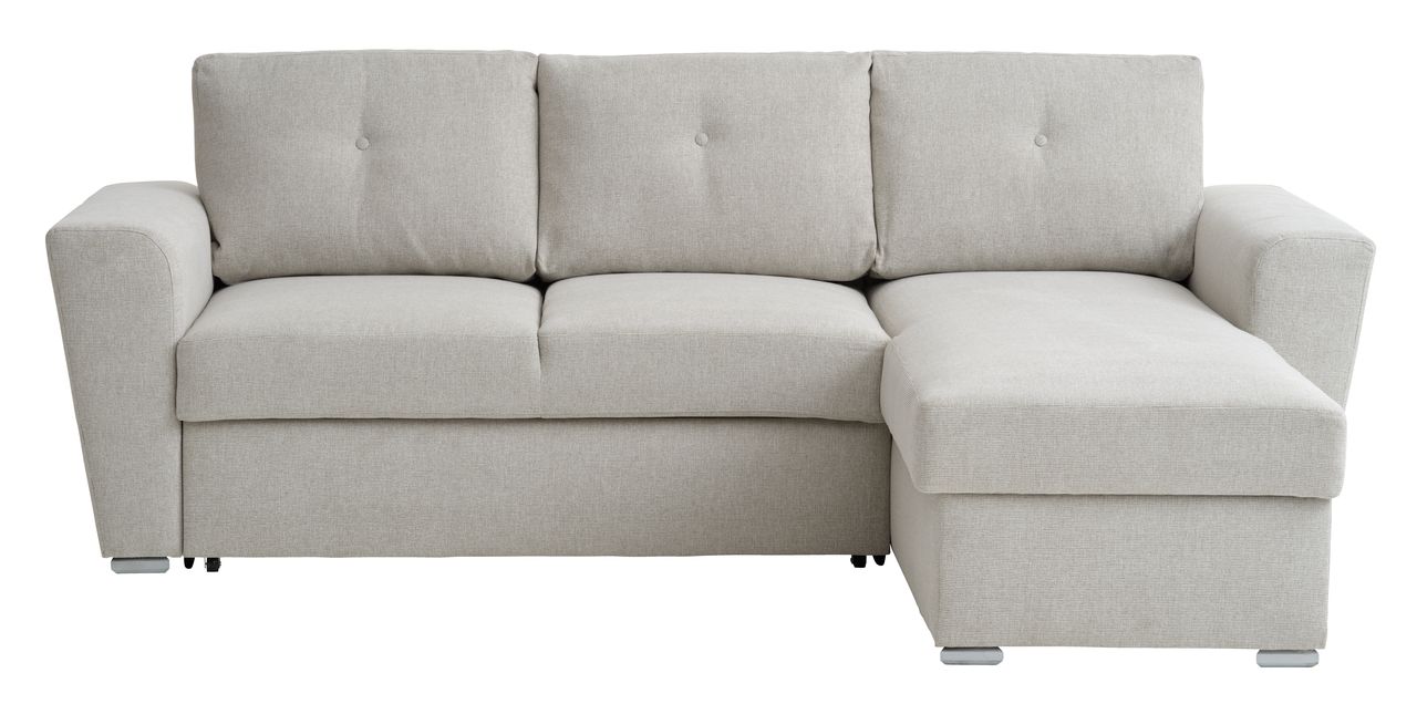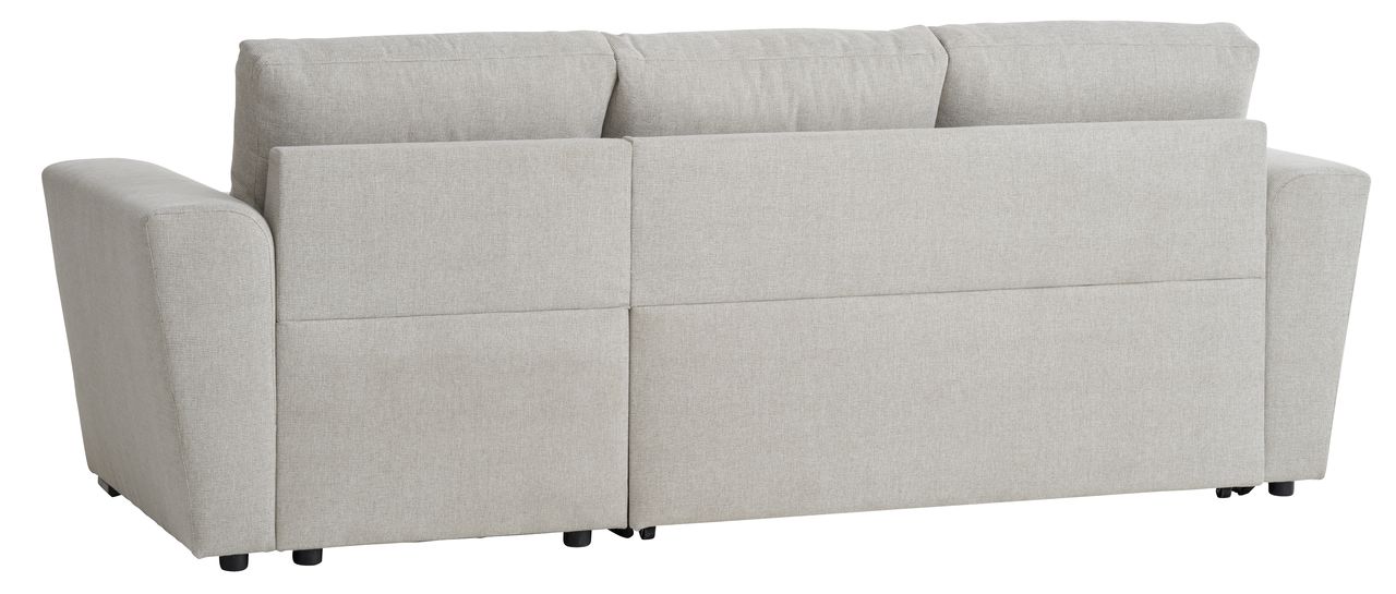Garnitura od tkanine, sa lijenjivcem. Lako se razvlači u krevet. Sjedište i naslon od pjene. Sa prostorom za odlaganje. Lijevi ili desni ugaoni dio. Površina za spavanje: 141x195 cm. Š243xV86xDub83/154 cm